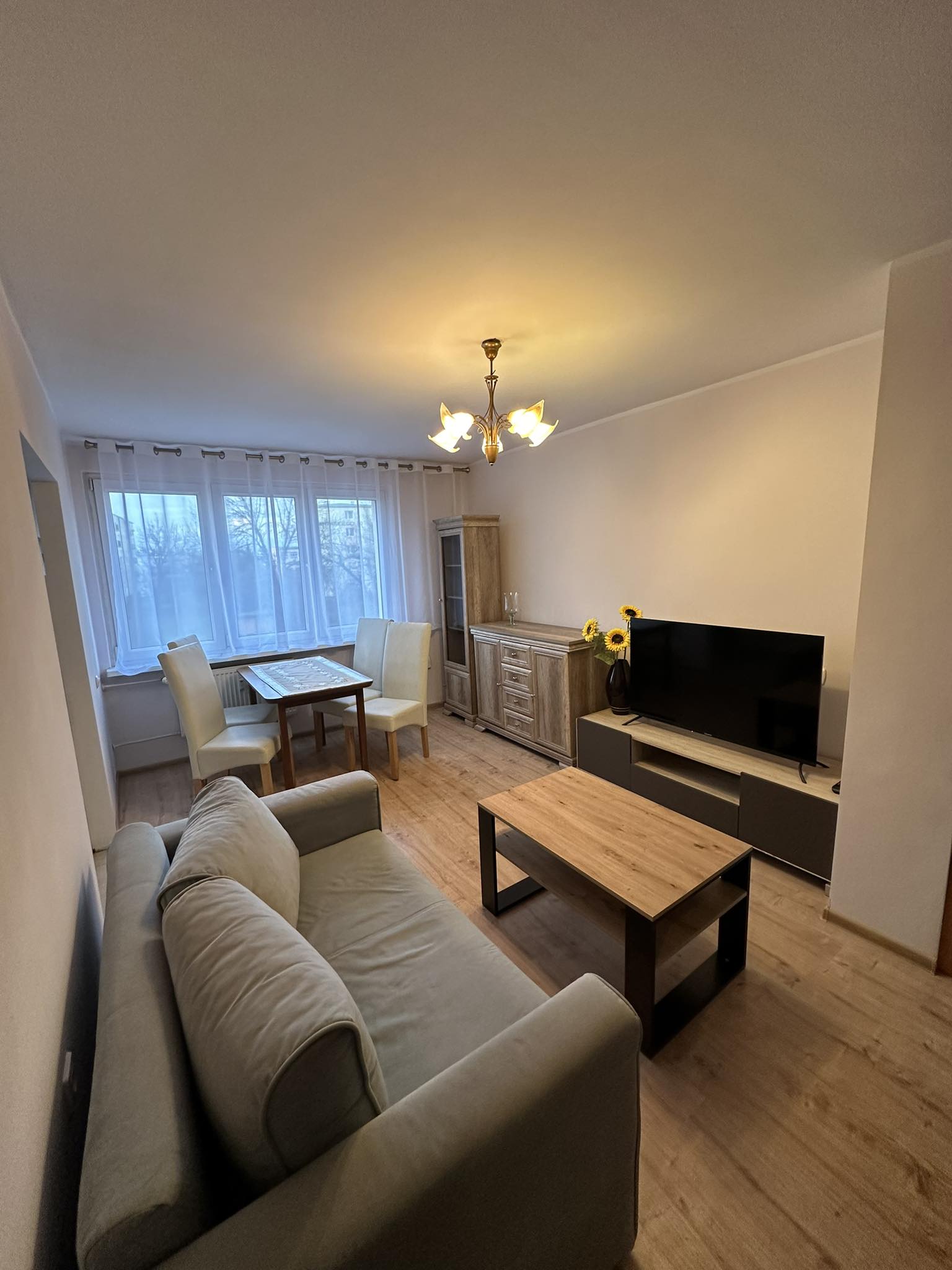 Lokal składa się z dwóch pokoi, łazienki oraz jasnej kuchni. Wyposażony we wszystkie niezbędne urządzenia.